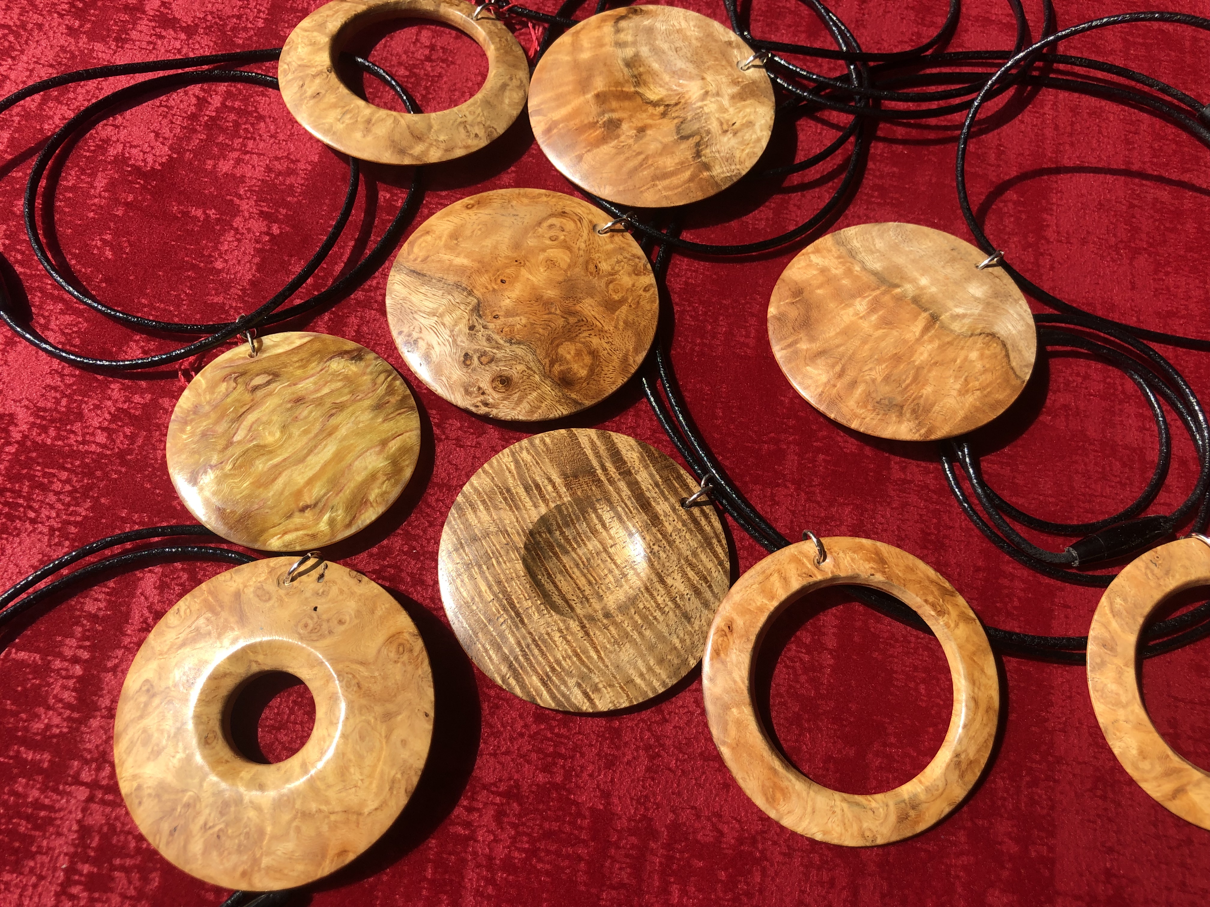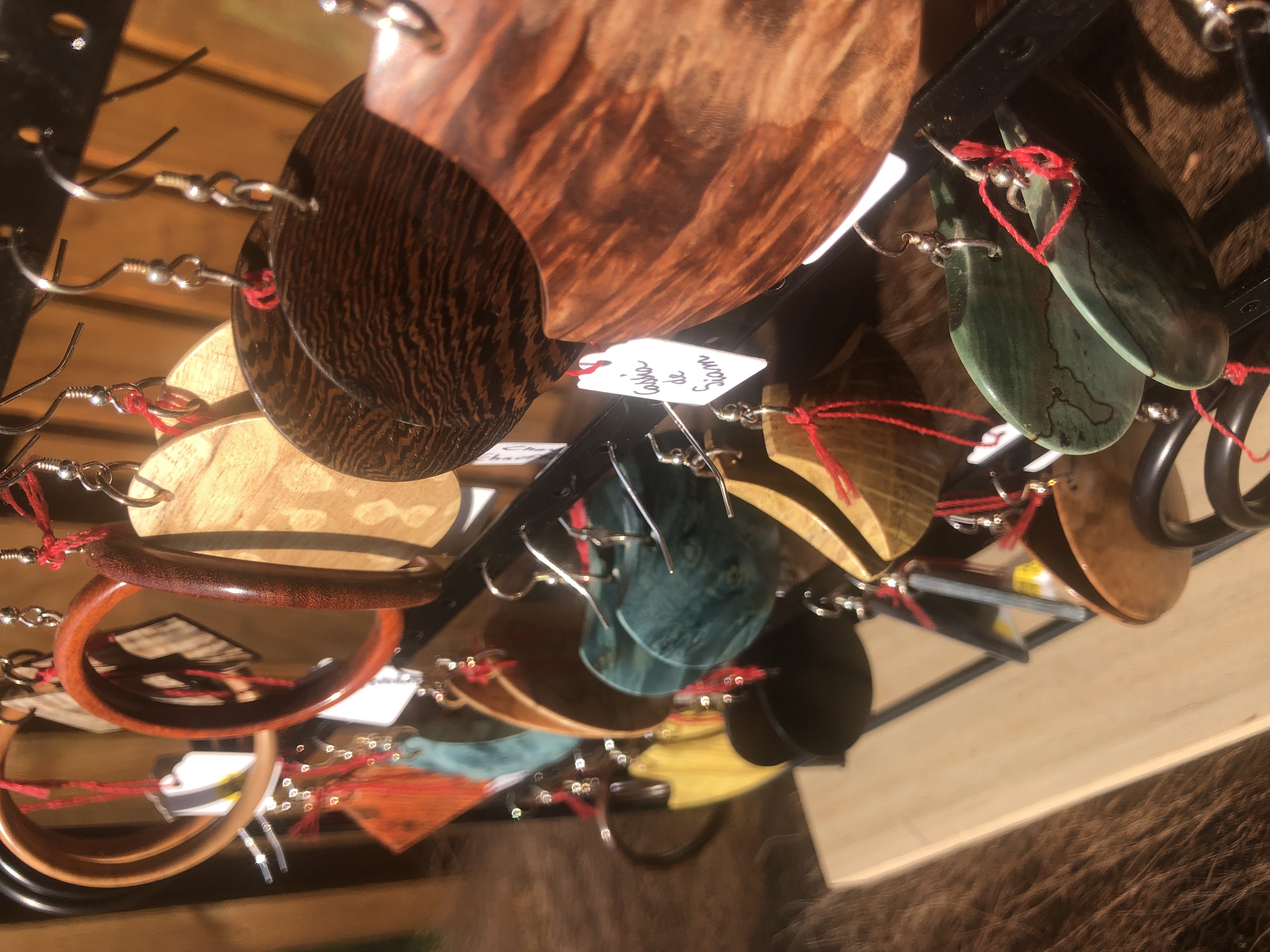 Les différents bijoux qui sont proposés ont été huilés à saturation pour assurer une bonne protection et laisser au bois son aspect naturel et chaud .